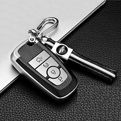 Ontto Guscio Cover per Chiave Telecomando per Ford Fusion Edge Mustang Mondeo F150 Explorer Expedition Ecosport 20172019 Coprichiave in TPU e Pelle Custodia Protettivo Portachiavi 4 Tasti-Argento