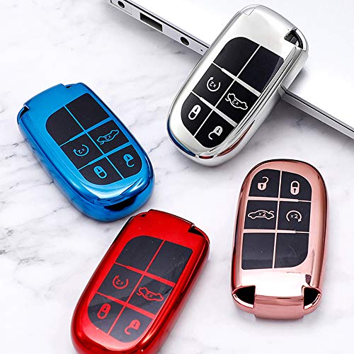 Ontto Guscio Cover per Chiave Telecomando Auto per Jeep Grand Cherokee Compass Journey Renegade Dodge Coprichiave in TPU Morbida Custodia Protettivo Portachiavi 4 Tasti-Argento