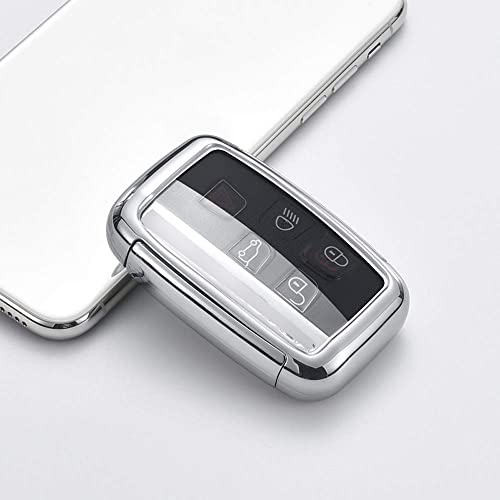 Ontto Guscio Cover per Chiave Telecomando Auto per Land Rover Discovery Evoque LR2 LR4 Defender Range Rover Sport Velar Vogue Coprichiave in TPU Morbido Custodia Protettivo Portachiavi-Argento B