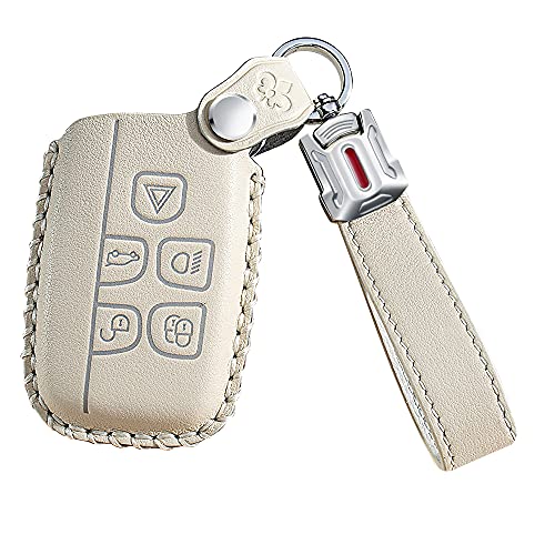 Ontto Portachiavi in pelle per auto per Land Rover Defender Discovery Evoque LR4 Range Rover Sport Jaguar 5 pulsanti accessori portachiavi portachiavi telecomando Shell chiave Protector Beige A