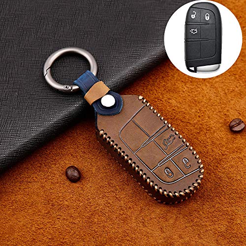Ontto 3 Pulsanti Guscio Cover per Chiave Telecomando per Jeep Grand Cherokee Dodge Dart Charger Challenger Journey Compass Renegade in Vacchetta Custodia Protettivo Coprichiave Portachiavi-Marrone