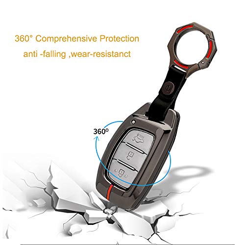 Ontto 3/4 Tasti Guscio Cover per Chiave Telecomando per Hyundai Kia IX20 IX30 IX35 IX45 IX55 I40 Tucson Santa Fe in Lega Zinco Pelle Custodia Protettivo Coprichiave Portachiavi-Nero
