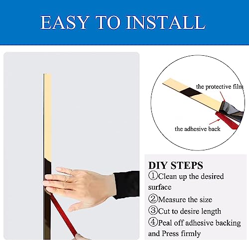 ONTWIE Modanatura metallizzata, modanatura metallizzata e decorazione da parete, striscia autoadesiva a specchio, finitura in acciaio inox, finitura oro metallizzata e design a bastone