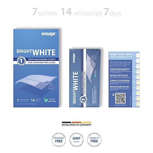 Onuge Bright White Teeth - Strisce sbiancanti per sbiancamento dei denti - Senza perossido - 14 strisce per 7 giorni