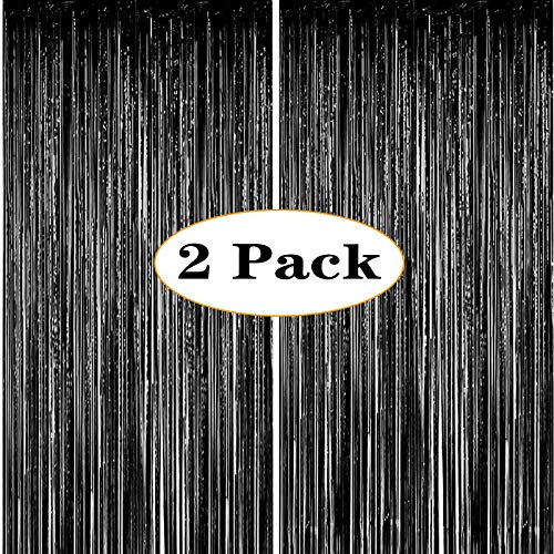 ONUPGO - Confezione da 2 tende a frangia metalliche lucide per capodanno, 1 x 3 m, perfette per compleanni, matrimoni, decorazioni per feste di Natale Nero