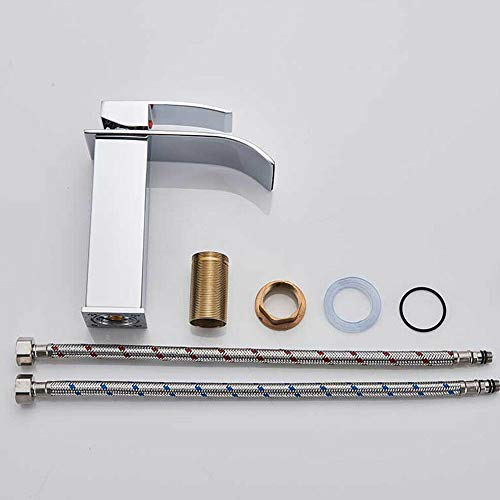Onyzpily - Miscelatore cromato per lavabo a cascata, rubinetto monocomando in ottone per lavello freddo e caldo, design moderno, corto