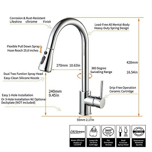 Onyzpily - Rubinetto miscelatore per lavello da cucina, con doccetta estraibile e bocca girevole, stile moderno, cromato