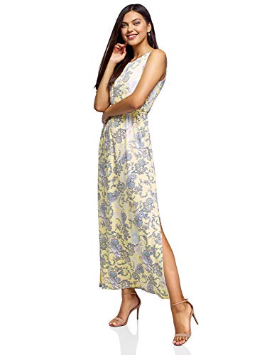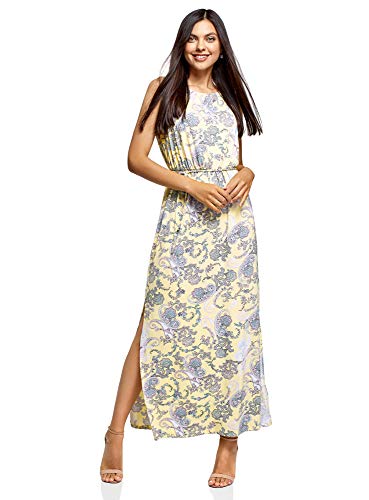 Oodji Collection Donna Abito Maxi con Laccetti in Vita, Giallo, IT 44 / EU 40 / M