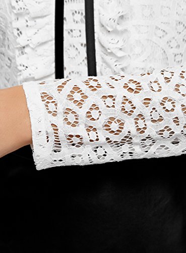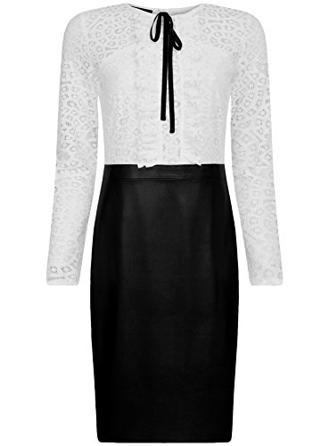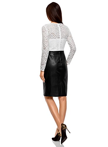 Oodji Collection Donna Abito Mix Materiali con Top in Pizzo e Gonna in Ecopelle, Bianco, IT 48 / EU 44 / XL