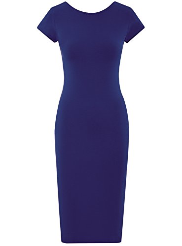 Oodji Collection Donna Abito Midi con Scollo Profondo sul Retro, Blu, IT 40 / EU 36 / XS