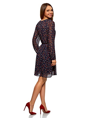 Oodji Collection Donna Abito Stampato in Chiffon, Blu, IT 42 / EU 38 / S