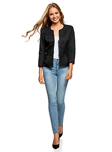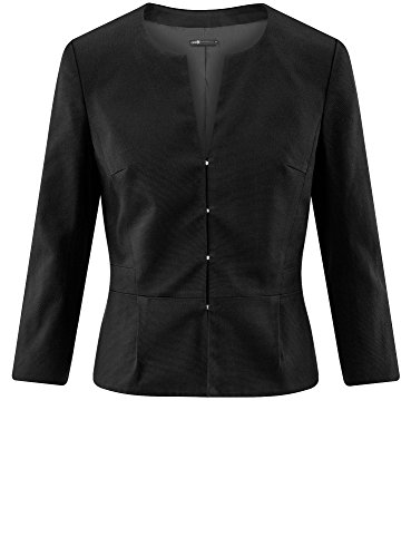 Oodji Collection Donna Blazer Aderente con Gancetti, Nero, IT 44 / EU 40 / M