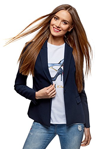 Oodji Collection Donna Blazer Classico Aderente, Blu, IT 48 / EU 44 / XL