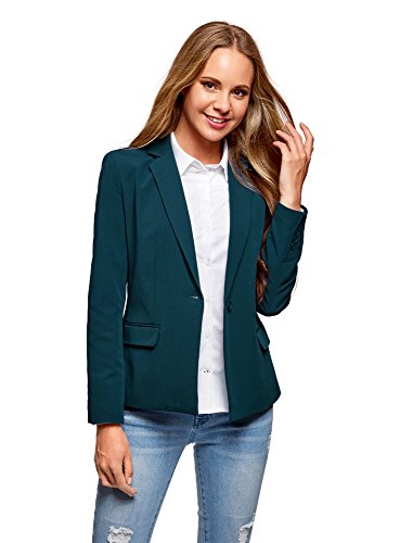 Oodji Collection Donna Blazer Classico Aderente, Verde, IT 40 / EU 36 / XS