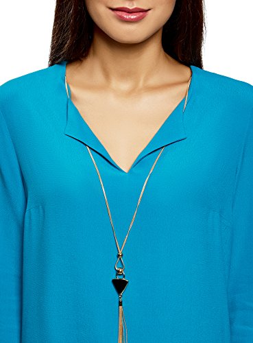 Oodji Collection Donna Camicetta Dritta con Decorazione, Turchese, IT 40 / EU 36 / XS