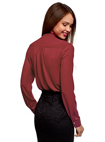 Oodji Collection Donna Camicetta Larga con Fiocco, Rosso, XXL