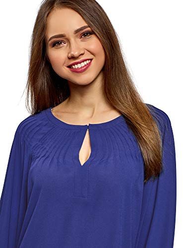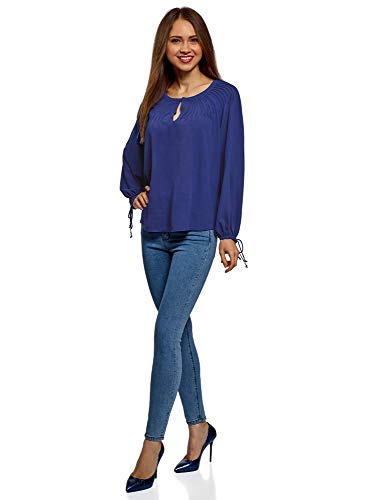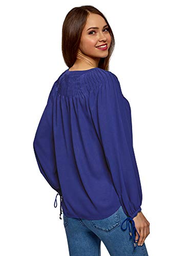 Oodji Collection Donna Camicetta Larga con Laccetti sui Polsini, Blu, IT 40 / EU 36 / XS