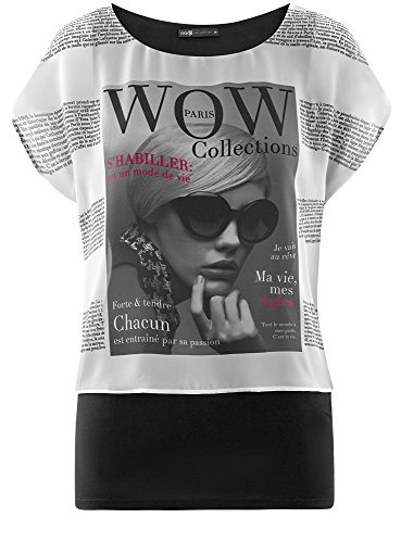Oodji Collection Donna Camicetta Multimateriale con Stampa, Bianco, IT 40 / EU 36 / XS