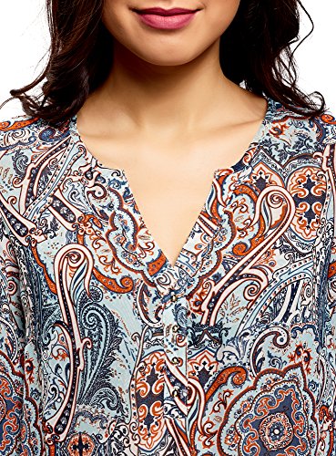 Oodji Collection Donna Camicetta Stampata in Chiffon, Turchese, IT 40 / EU 36 / XS