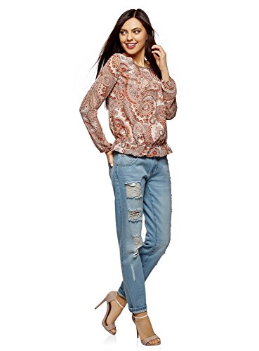Oodji Collection Donna Camicetta Stampata a Maniche Lunghe, Arancione, IT 40 / EU 36 / XS