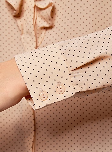 Oodji Collection Donna Camicetta in Tessuto Fluido con Volant, Beige, IT 46 / EU 42 / L