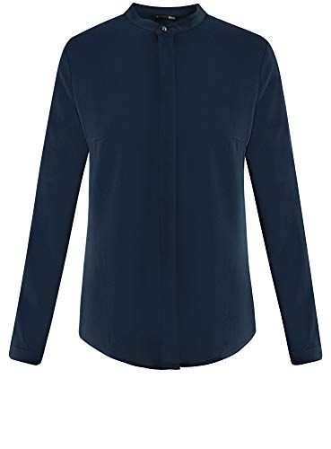 Oodji Collection Donna Camicetta in Viscosa con Colletto alla Coreana, Blu, IT 40 / EU 36 / XS