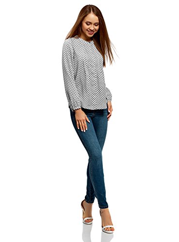 Oodji Collection Donna Camicetta in Viscosa con Cuciture sul Davanti, Bianco, IT 48 / EU 44 / XL