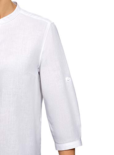 Oodji Collection Donna Camicia in Cotone con Collo alla Coreana, Bianco, XXL