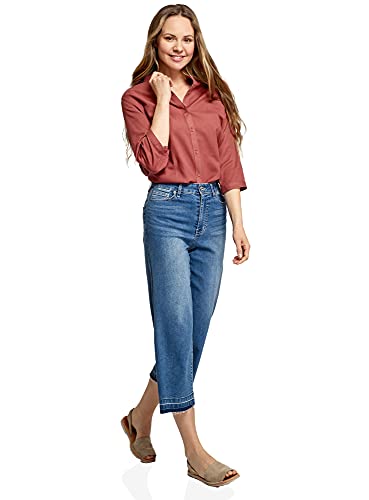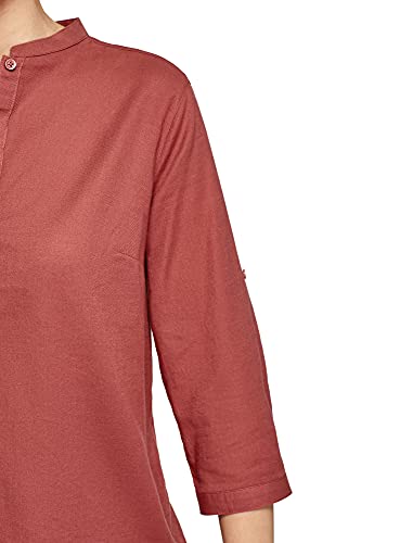 Oodji Collection Donna Camicia in Cotone con Collo alla Coreana, Rosso, XS