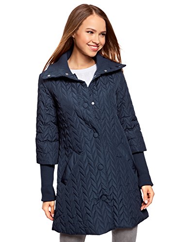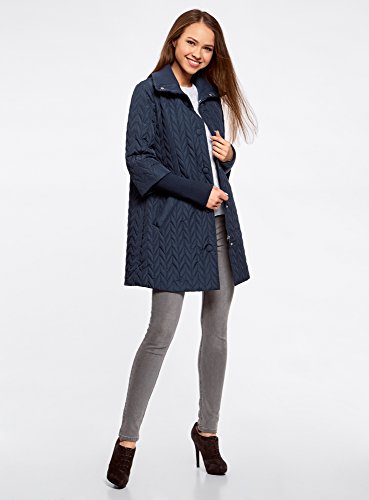 Oodji Collection Donna Cappotto Trapuntato con Collo Alto, Blu, IT 44 / EU 40 / M