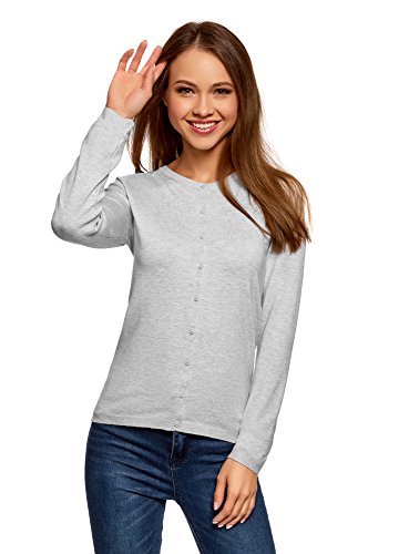 Oodji Collection Donna Cardigan Lavorato a Maglia con Chiusura a Bottoni, Grigio, IT 48 / EU 44 / XL