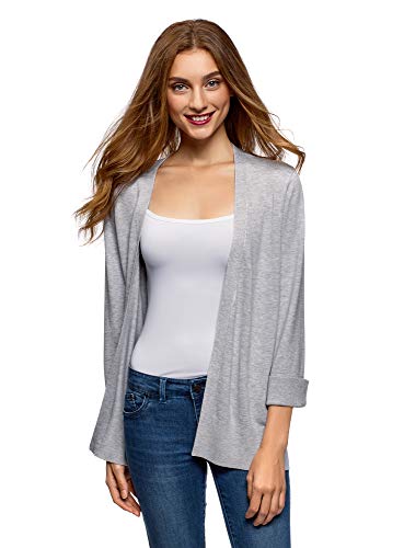 Oodji Collection Donna Cardigan Lavorato a Maglia con Retro Traforato, Grigio, IT 42 / EU 38 / S