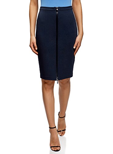 Oodji Collection Donna Gonna in Maglia con Zip sul Davanti, Blu, IT 42 / EU 38 / S