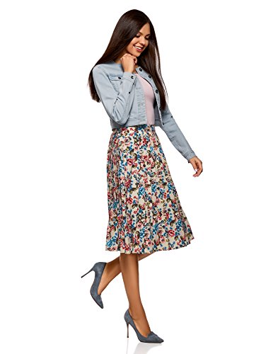 Oodji Collection Donna Gonna Midi a Pieghe, Multicolore, IT 44 / EU 40 / M