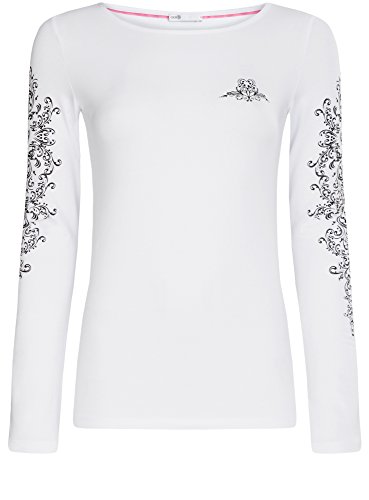 Oodji Collection Donna Maglia in Cotone con Maniche Lunghe, Bianco, IT 48 / EU 44 / XL