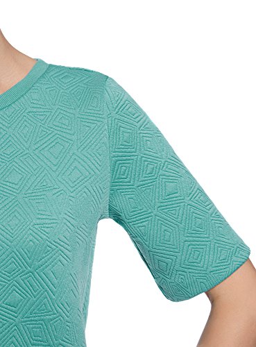 Oodji Collection Donna Maglioncino in Tessuto Strutturato con Maniche Corte, Blu, M