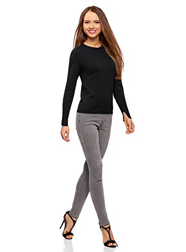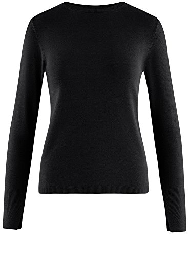 Oodji Collection Donna Maglione con Maniche Lunghe e Scollo Rotondo, Nero, IT 44 / EU 40 / M