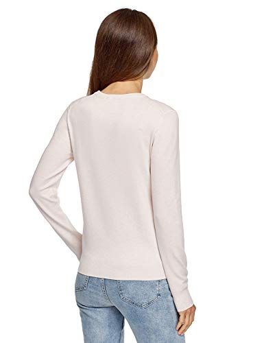 Oodji Collection Donna Maglione con Maniche Lunghe e Scollo Rotondo, Bianco, M
