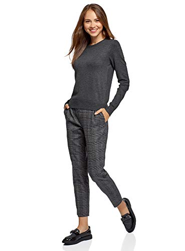 Oodji Collection Donna Maglione con Maniche Lunghe e Scollo Rotondo, Grigio, M