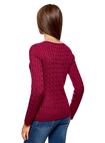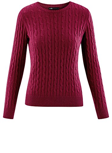 Oodji Collection Donna Maglione a Trecce, Rosso, IT 40 / EU 36 / XS