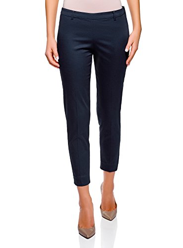 Oodji Collection Donna Pantaloni in Cotone Stretti, Blu, IT 44 / EU 40 / M