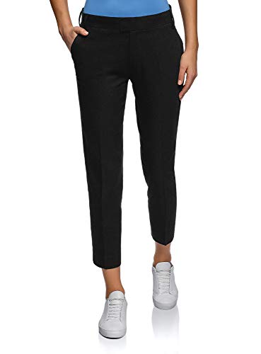 Oodji Collection Donna Pantaloni Cropped in Lino, Nero, IT 50 / EU 46 / XXL