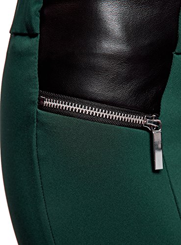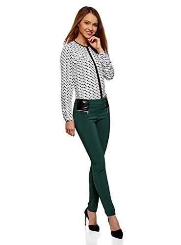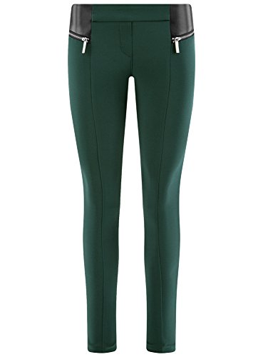 Oodji Collection Donna Pantaloni Elasticizzati con Zip Decorative, Verde, IT 40 / EU 36 / XS