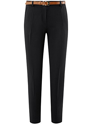 Oodji Collection Donna Pantaloni Stretti con Cintura, Nero, IT 40 / EU 36 / XS