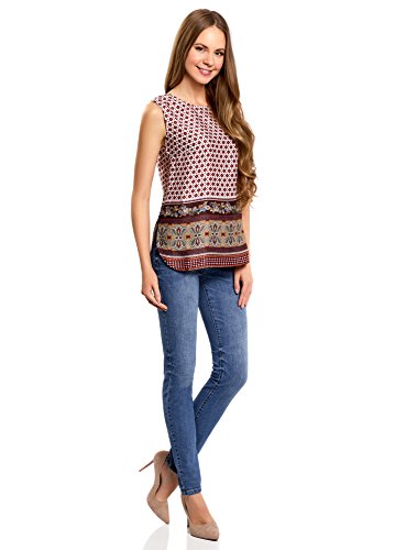 Oodji Collection Donna Top Stampato in Tessuto Fluido, Multicolore, IT 44 / EU 40 / M