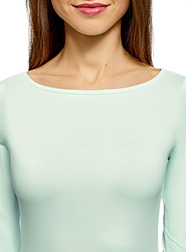 Oodji Collection Donna T-Shirt Basic con Maniche a 3/4, Verde, IT 50 / EU 46 / XXL