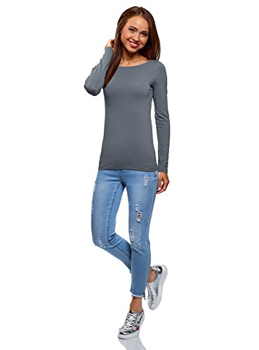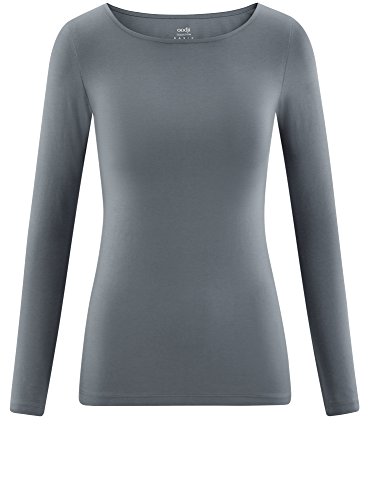 Oodji Collection Donna T-Shirt con Maniche Lunghe, Blu, L