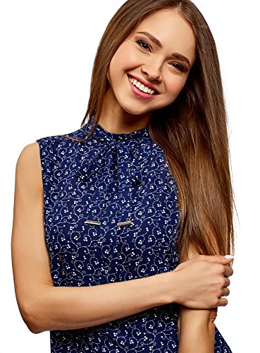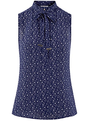 Oodji Collection Donna Top in Tessuto Fluido con Volant, Blu, IT 46 / EU 42 / L