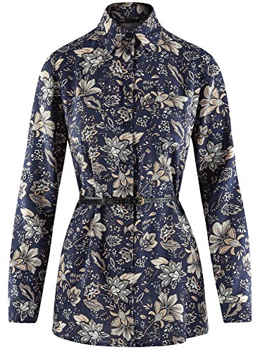 Oodji Collection Donna Tunica Stampata in Viscosa con Cintura, Blu, IT 42 / EU 38 / S
