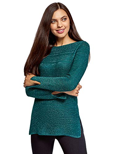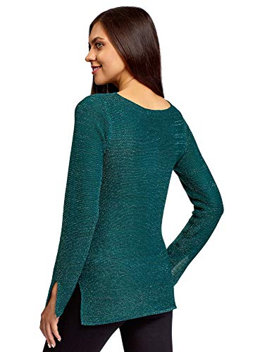 Oodji Collection Maglione da Donna con Lurex e Spacchi Decorativi, Grün (6e00x), L